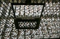 Seated in neat columns of plastic chairs in the prison's main hall, some 220 defendants are accused of collectively carrying out more than 29,000 murders.