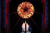 Performers at the San Siro show wore outsized heads of the three great masters of Italian opera -- Giuseppe Verdi, Giacomo Puccini and Gioachino Rossini while American diva Mariah Carey, in a white sequined dress with feathers, sang "Volare" in Italian and "Nothing is Impossible".