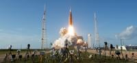 NASA's Space Launch System rocket carrying the Orion spacecraft with astronauts headed to the moon, blasts off Wednesday, April 1 in Florida. (NASA via SWNS)