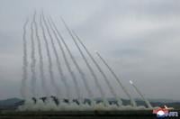 Photos released by state media showed several rockets blasting off large vehicles into the air.