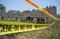 Residents gather as Pakistan police inspect a site cordoned off with barricade tapes after an Indian drone was reported to have been downed