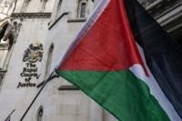 A small group of protesters gathered outside the court on Wednesday, waving Palestinian flags and shouting support for Palestine Action.