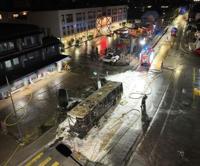 The burnt-out shell of the bus was screened off behind white tarpaulins set up across the road, an AFP journalist saw. The scene was cordoned off, with police standing guard at the tape. Firefighters and fire trucks were also present.