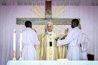 "We can see today how the hope of many people is frustrated by violence, exploited by the powerful and defrauded by the rich," the pope said in Portuguese at a giant open-air Mass at Saurimo.
