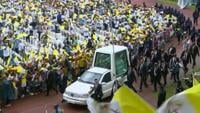 On Wednesday, the pope went to Equatorial Guinea's notorious Bata prison, where he was greeted by hundreds of shaven-headed inmates in the driving rain.