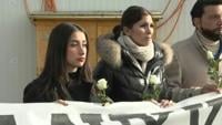 She was among family members and friends of those killed taking part in the demonstration. Some held white roses in their hands, others placards reading "You are not alone".