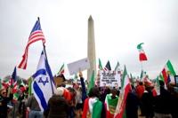 In Washington DC, demonstrators gathered at the National Mall carrying US, Israeli and Iranian flags, with some protesters painting the colours of the Iranian flags on their cheeks.
