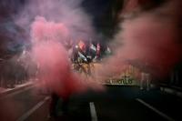 In the Greek capital Athens, a throng of protesters set off fireworks and flares.