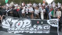 "We are prepared to block everything. The genocidal machine must stop immediately," demonstrators chanted.