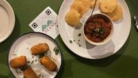 Must-try dishes include mini meat alcapurrias with spicy tomato sauce, roasted pumpkin with feta, nuts, and honey, and ravioli stuffed with mozzarella, spinach, blue cheese, pears, prosciutto, and nuts. For cocktails, try their memorable gin, uvas y espumas drink featuring lavender-infused, caramelized grapes and cava, or their mojito de la casa with gin, soursop juice, basil, and lemon.