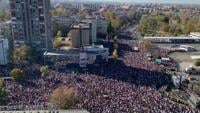 People have been pouring into Serbia's second-largest city since Friday, arriving by car, bicycle, on foot and even tractor.