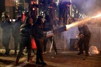 Both the parliament and the seat of government were targeted. Some protesters launched fireworks while the police, out in force for the demonstration, used water cannons to disperse the crowd.