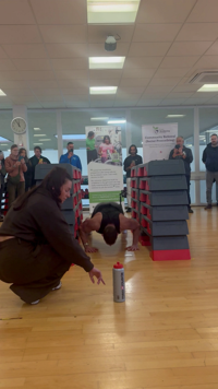 Incredible video footage shows the mental health coach doing the 19 push-ups up onto six step-up decks - at a height of one meter.