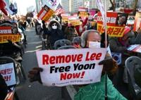hundreds of Yoon supporters also gathered on Wednesday not far from the National Assembly, holding placards calling for the former president to be released and for Lee to be removed from office and put on trial.