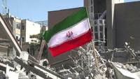 A flag of the Islamic republic has been planted in the rubble.
