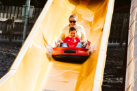 The park includes rides such as the Green Dragon Roller Coaster, a zip line, and a solar-powered water slide.