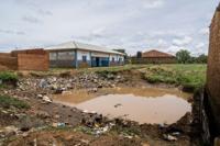 Mvubu's field is located directly within the path of runoff water from the CDM site, surrounded by an imposing concrete wall guarded by officers, on a mountain overlooking residential neighbourhoods.Â