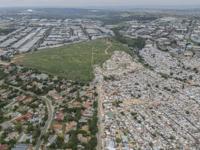 Bags of refuse for sale to recycling companies lined a muddy path to a vegetable garden tended by residents of the informal settlement at the foot of the high-rises of Sandton, South Africa's economic hub.