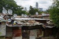 The informal settlement where Bryan lived with his family was not visible from the golden building and had none of these services.