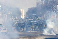 The hearing came a day after a rally in the Balkan nation's capital drew tens of thousands to protest against the trial.