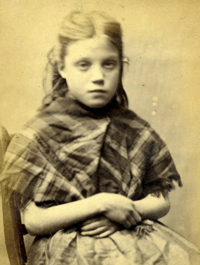 Wearing a pretty dress with her hands crossed, Margaret Cosh, 15, stared defiantly at the camera after she was caught stealing a coat.