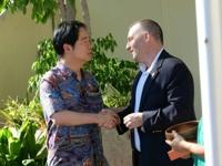 He was met by Ingrid Larson, managing director in Washington of the AIT, Hawaii Governor Josh Green, and others.