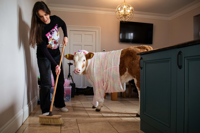 Otherwise the family have been surprised by how well behaved the calf is inside the house.