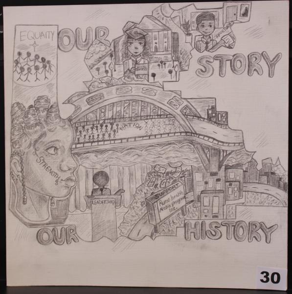 Taylor Crocker, a twelfth grader at Jefferson County International Baccalaureate School, was an honorable mention for "Origins of Alabama".