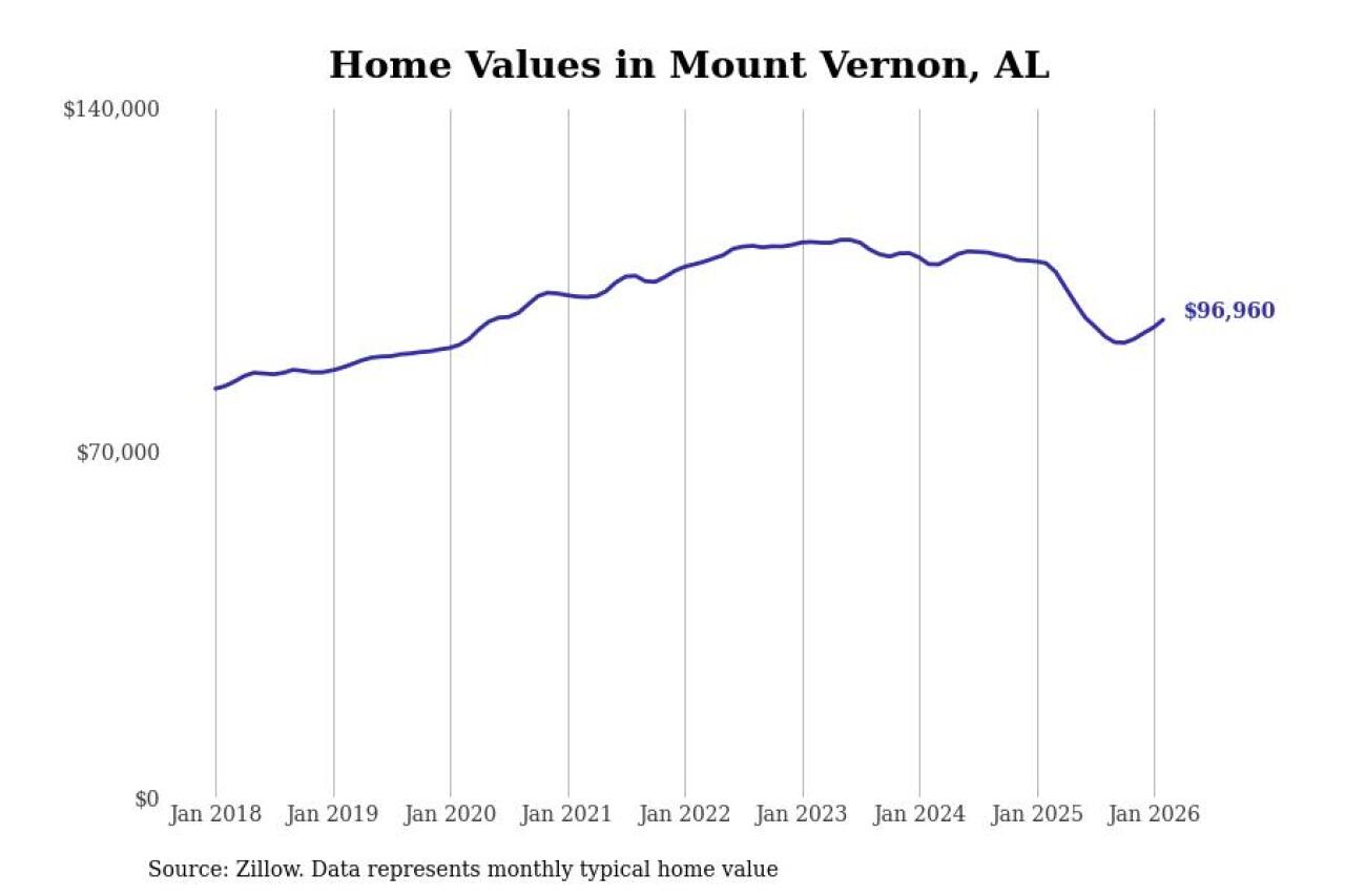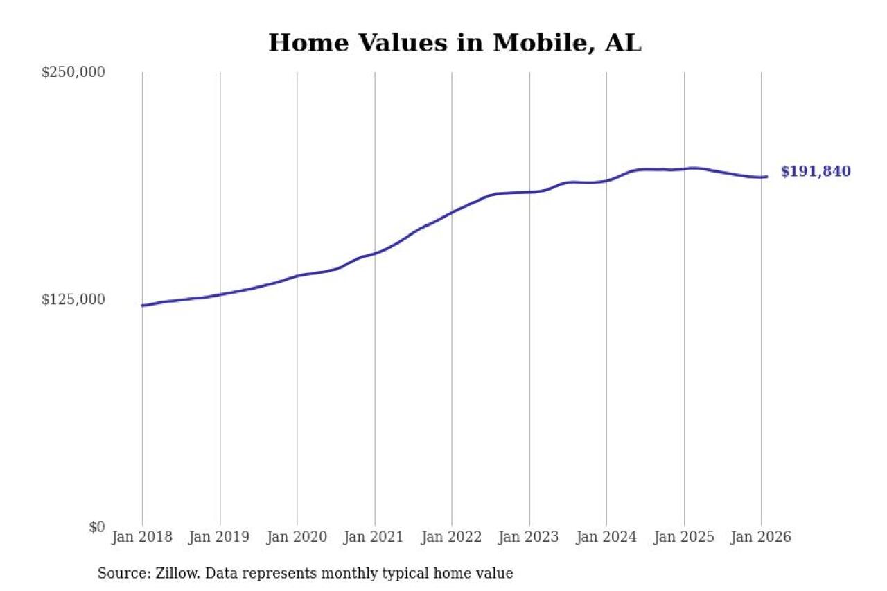 Cities with the fastest-growing home prices in the Mobile metro area