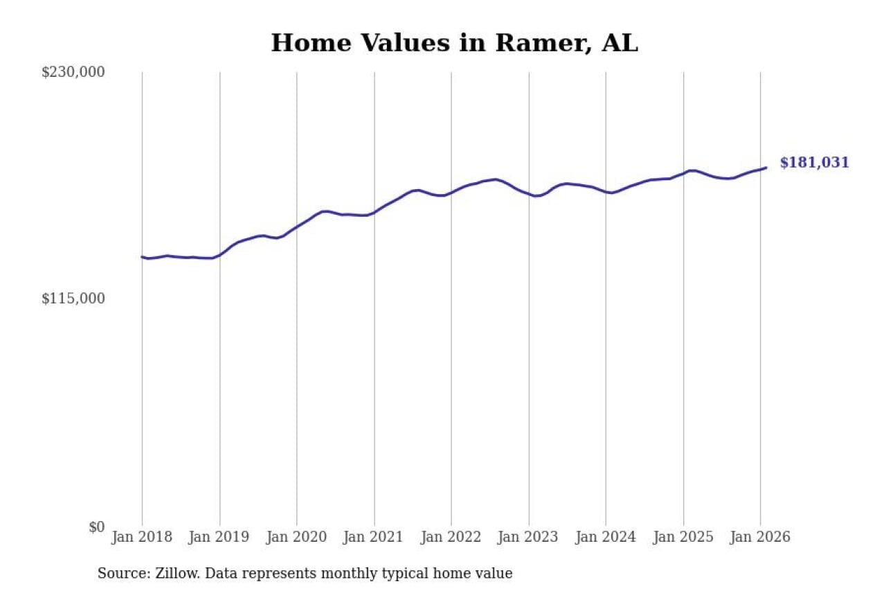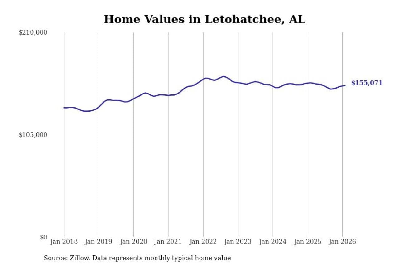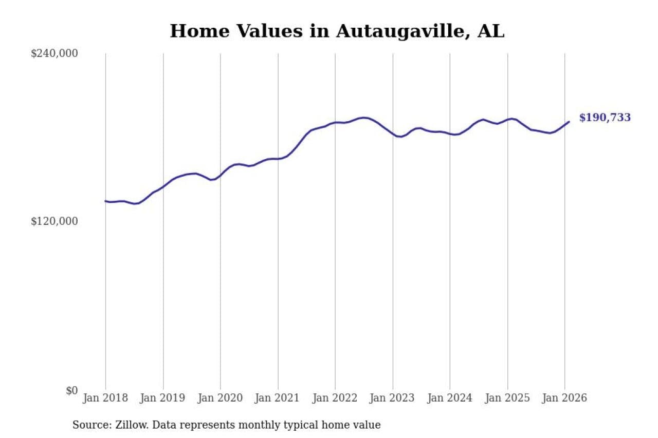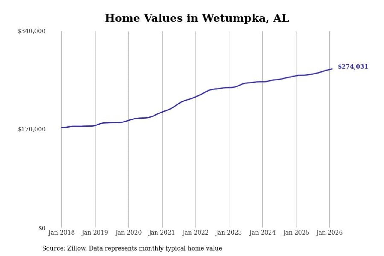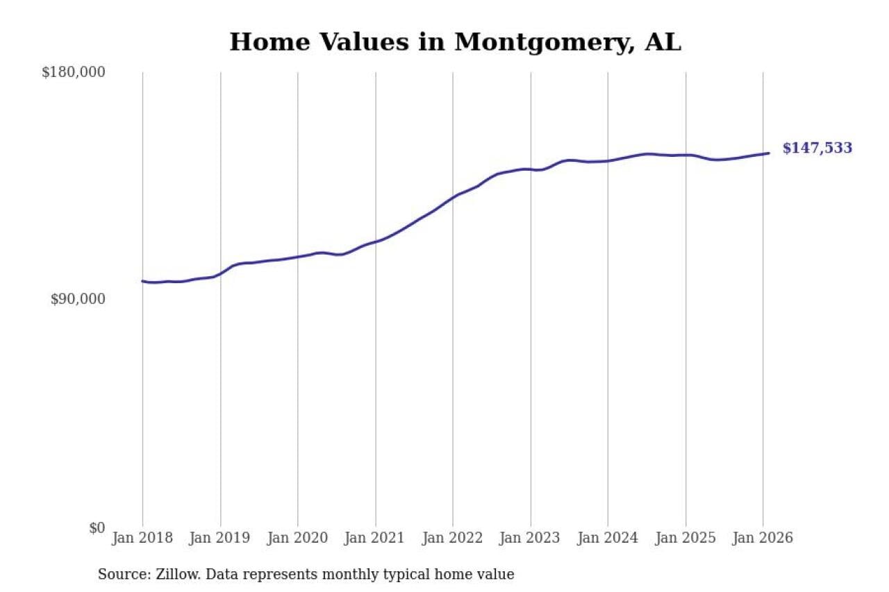 Stacker compiled a list of cities with the most expensive homes in the Montgomery, AL metro area using data from Zillow. Charts show the monthly typical home value since January 2018.