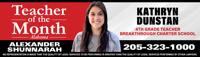 A teacher at Breakthrough Charter School in Marion was named Teacher of the Month by Alexander Shunnarah.