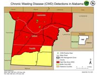 Under Alabama’s Chronic Wasting Disease (CWD) Management Zone Regulation (220-2-.167), all deer harvested in the High-Risk Zone and the Buffer Zone of the state’s CWD Management Zone (CMZ) must be submitted for CWD testing during specific weekends of the 2025-2026 white-tailed deer season.