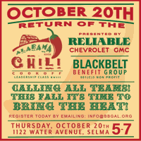 News Alabama River Chili Cookoff returns on Oct. 20 Nathan Prewett Nathan Prewett Jul 6, 2022 Alabama River Chili Cookoff presented by Reliable Chevrolet GMC and Blackbelt Benefit Group will return on Oct. 20.Â