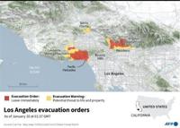 Map of Los Angeles in California, US, showing Cal Fire evacuation orders and warnings as of Jan 10, 2025, 01:37 GMT