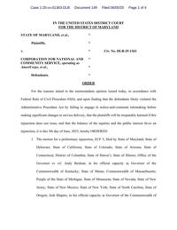 National News Helene: Injunction temporarily halts cuts at beleaguered AmeriCorps Jun 5, 2025 FNF - NC - State of Maryland v Corporation for National and Community Service