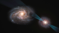 National News Astronomers spot ‘cosmic joust’ for first time as two galaxies collide By Talker May 22, 2025 https://talker.news/wp-content/uploads/2025/05/SWMRjoust_176335.mov