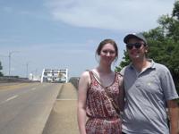 Tourists Ashley Diester and Joe Levin of Austin, Texas, on the Civil Rights Trail visiting the Civil Rights Memorial and the Edmund Pettus Bridge.