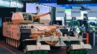 A pair of swivelling, human-like robotic arms, built for physical artificial intelligence research, mirror the motions of an operator in a VR headset twirling his hands like a magician.
