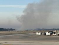A United Airlines Boeing 777 bound for Tokyo had to turn back to Washington's Dulles International Airport on Saturday after an engine failed during takeoff, igniting a brush fire near the runway, officials said.