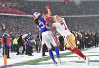 National NFL: San Francisco 49ers at Buffalo Bills Mark Konezny-Imagn Images Dec 1, 2024 Dec 1, 2024; Orchard Park, New York, USA; Buffalo Bills wide receiver Mack Hollins (13) catches a touchdown over San Francisco 49ers cornerbac…