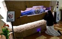His remains have been embalmed and his youthful face and jet-black hair are astonishingly lifelike