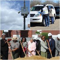 Top left: Skycop. Top right: Vaccine line. Bottom: Gov. Kay Ivey breaks ground at Brown Chapel A.M.E. Church.