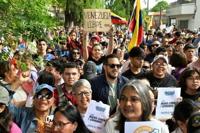 Venezuelans in Uruguay rally in support of opposition leader Edmundo Gonzalez Urrutia outside the presidential residence in Montevideo