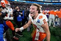 National NCAA Football: ACC Championship-Clemson at Southern Methodist Bob Donnan-Imagn Images Dec 17, 2024 Dec 7, 2024; Charlotte, NC, USA; Clemson Tigers quarterback Cade Klubnik (2) celebrates after winning the 2024 ACC Championship game at Bank o…