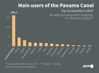 Graphic showing the top 15 countries by cargo transported through the Panama Canal in 2024, according to data from the Panama Canal Authority