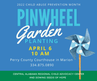 The Central Alabama Regional Child Advocacy Center invites Dallas County to “Plant a Pinwheel Garden” at 12:15 p.m. on Thursday, April 8.