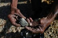 An artisanal miner holds ore extracted from an abandoned mine in El Salvador