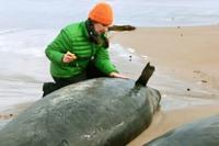 Dolphins stranded on a beach near Arthur River on the west coast of Tasmania
