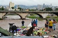 People look at the flooding of the Choluteca river in Tegucigalpa, Honduras, on November 17, 2024