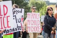 A protest against the flu vaccine in Massachusetts last year, in which several signs cited Covid